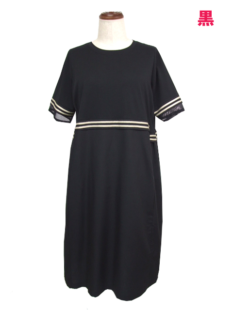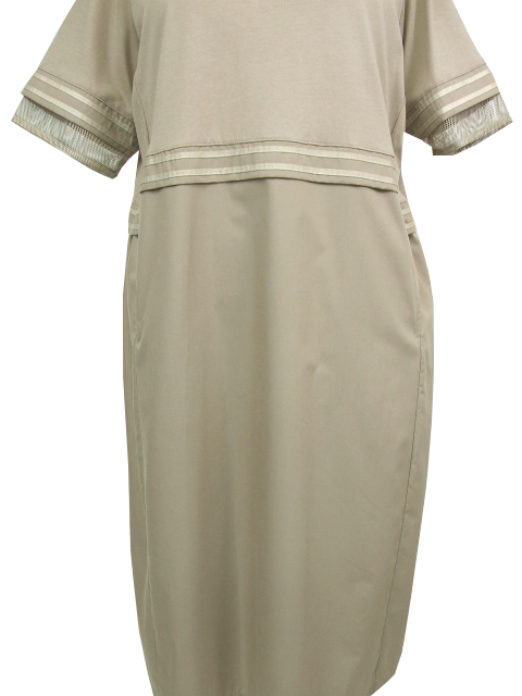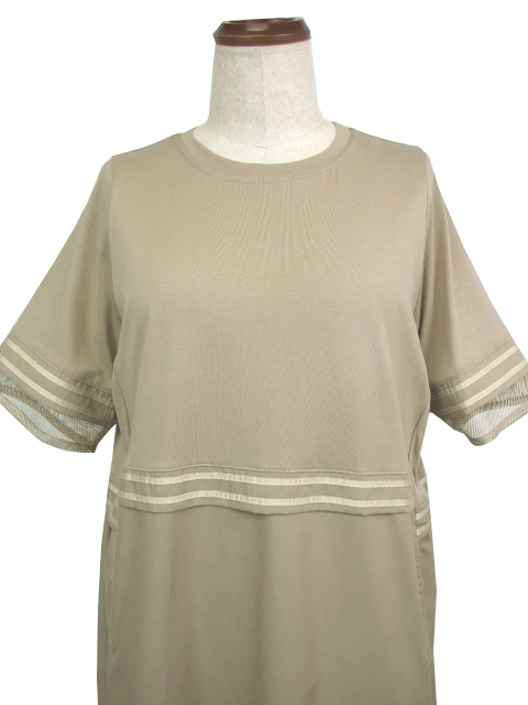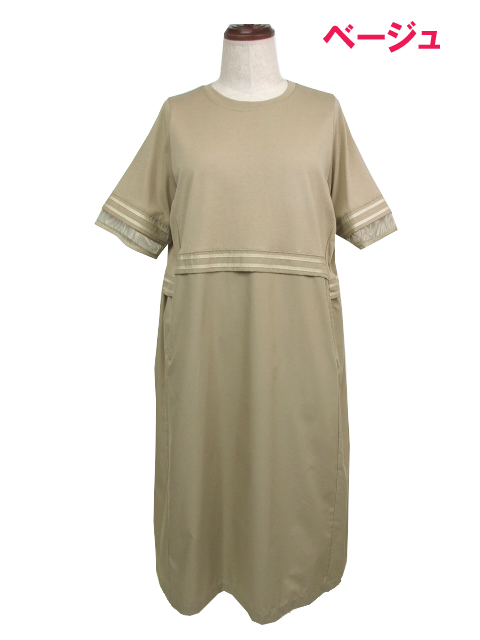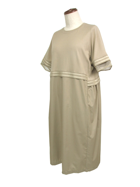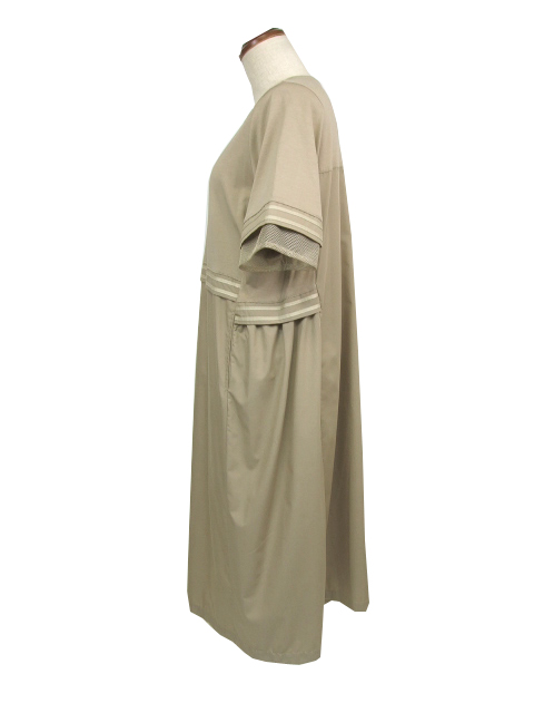 dtb0360:テープ使い異素材切替ワンピース【SEPIA】