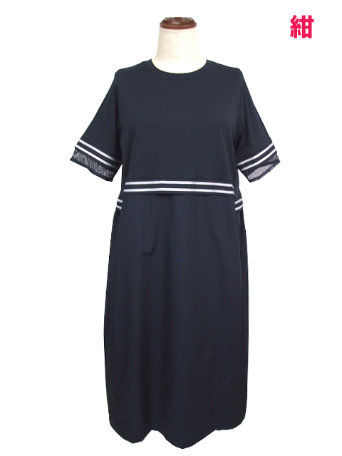 ■dtb0360:テープ使い異素材切替ワンピース【SEPIA】