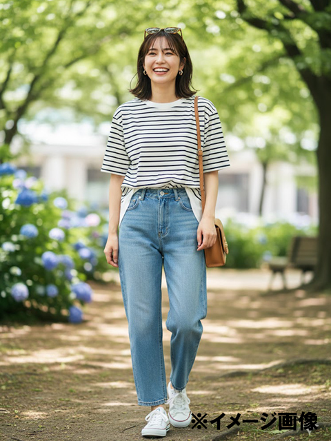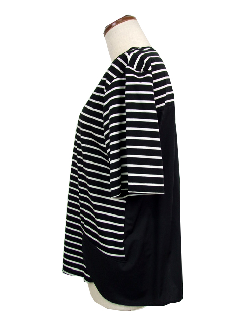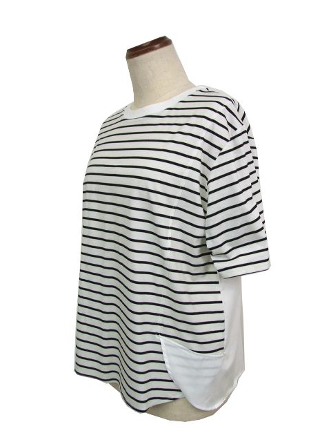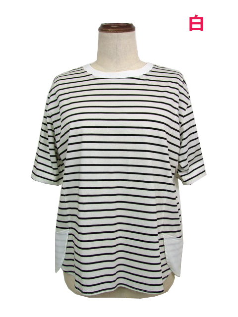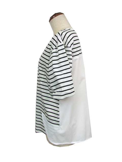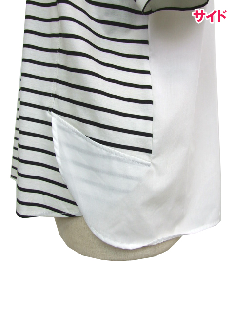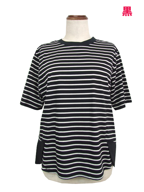 コットン100%のボーダーTシャツと布帛生地をドッキングさせたおしゃれな一枚です。