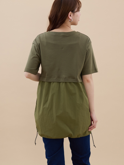カット地は伸びがあってやわらかく、布帛部分はさっぱりした風合いがあり涼しく快適◎