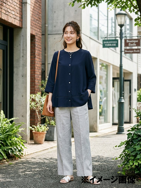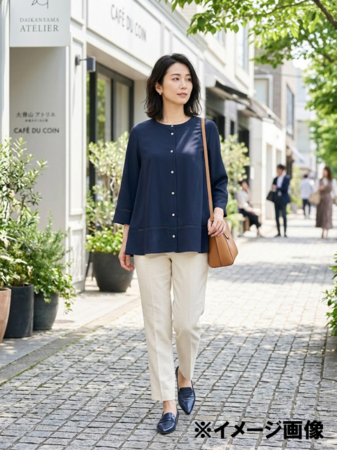 オフィス・デイリー、同素材のパンツとセットアップしてオケージョンまで、しっかり使えるきれいめブラウスです。